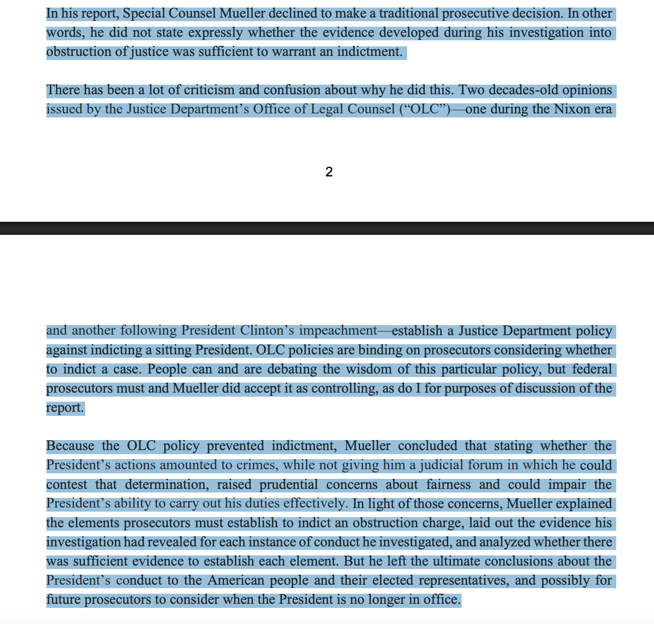 In June 2019, I testified before the House Judiciary Committee, alongside Barb and John Dean (yes, that John Dean), about the Report. In my opening statement, I explained why Mueller had adhered to DOJ policy when he declined to make a prosecutorial decision on whether to indict Trump.