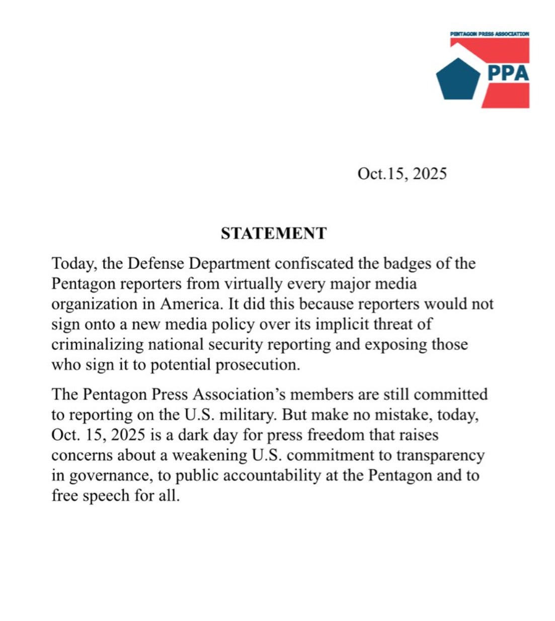 We’ve been following the story of efforts by Hegseth’s Pentagon to force journalists to sign a pledge that would make it impossible to do independent journalism. Most journalists, across the board, declined to bend the knee. Attempting to cancel the First Amendment is part of this administration’s legacy.