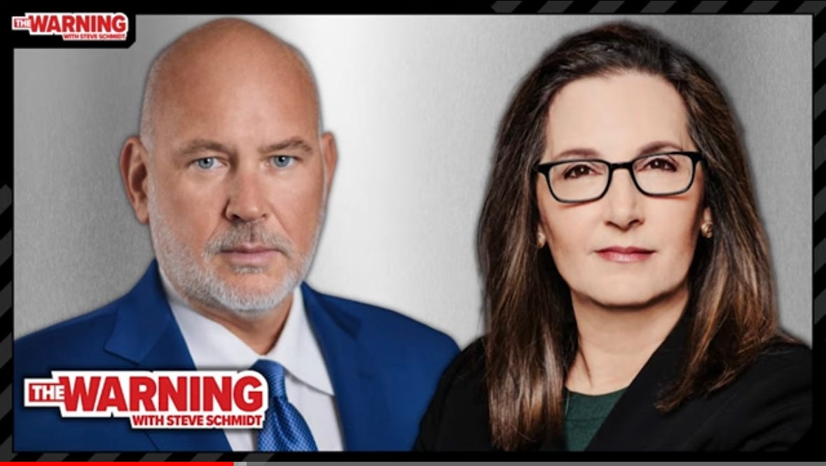 Tonight, never-Trumper Steve Schmidt, who writes The Warning on Substack, was nice enough to host me for a conversation with our subscribers. Because Zoom limits the number of people who can join, I know not all of you who wanted to were able to attend. So, we taped the conversation and you can listen to it on audio if you didn’t get to join us in real time.