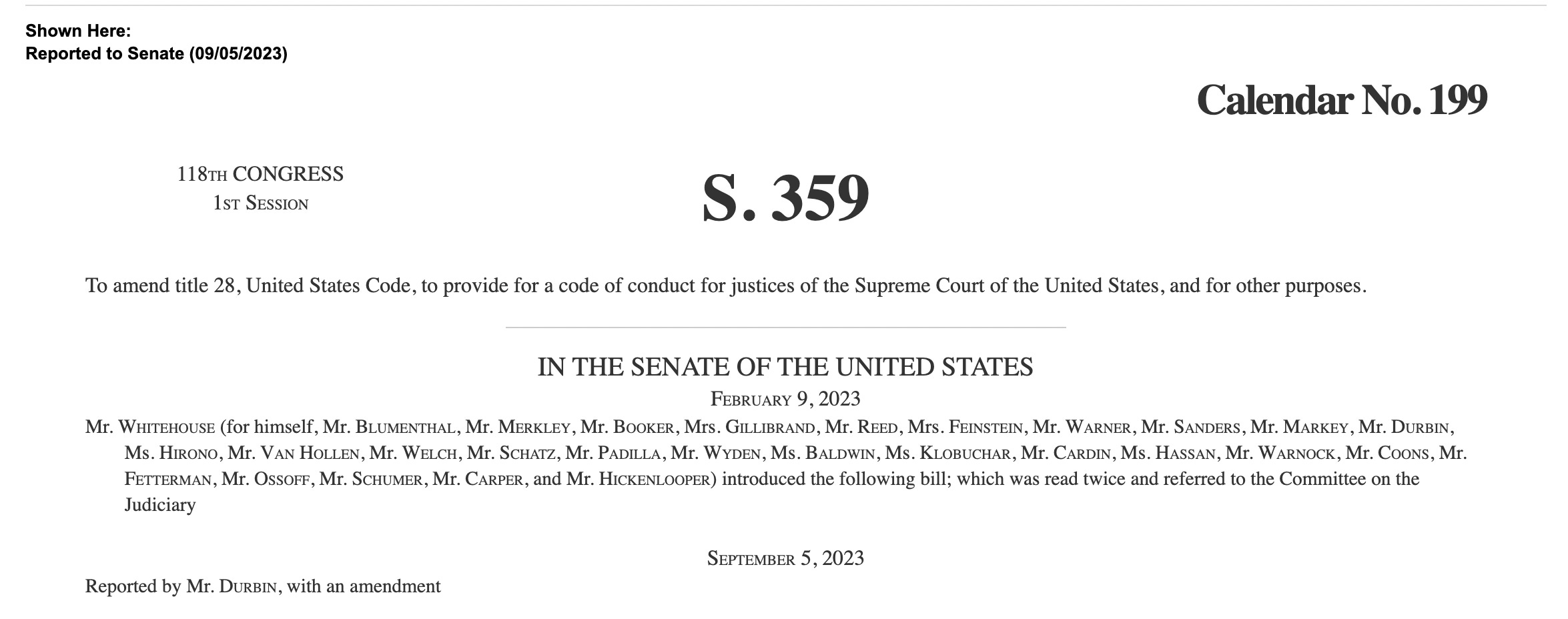 Senate Democrats agree. Last summer, Rhode Island Senator Sheldon Whitehouse proposed a measure that would have required a code of conduct for the Supreme Court. Hearings took place, but the bill stalled and never made it to a vote.