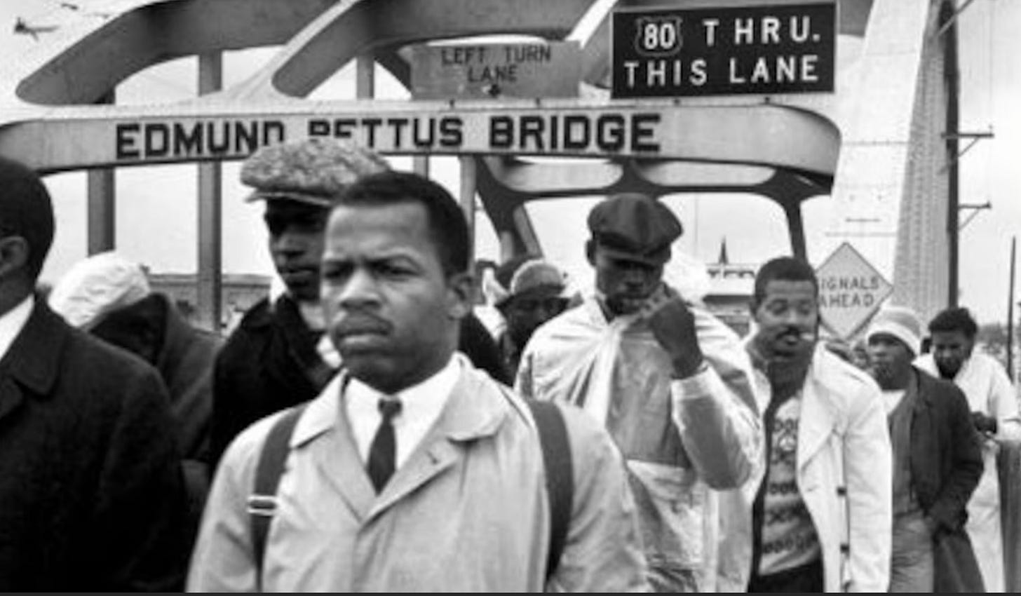 Today marks the 61st anniversary of Bloody Sunday, March 7, 1965. The Selma to Montgomery, Alabama, march for voting rights was halted by Alabama state troopers and sheriffs who tear-gassed and beat the marchers. A trooper beat Future Georgia Congressman John Lewis in the head with a nightstick.
