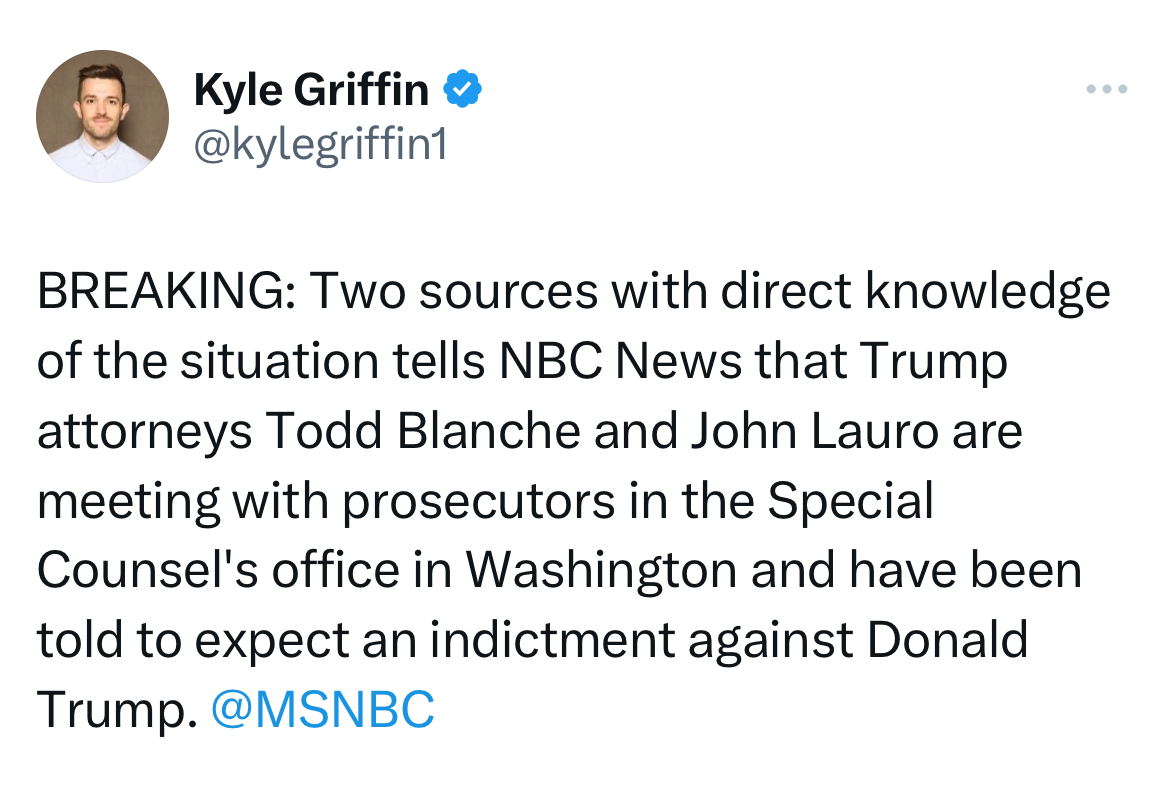 This morning we woke up to reporting that suggests Donald Trump may be indicted by the special counsel as soon as today in the January 6-related investigation. Even if it takes a little longer than that, it seems clear we are headed that direction.