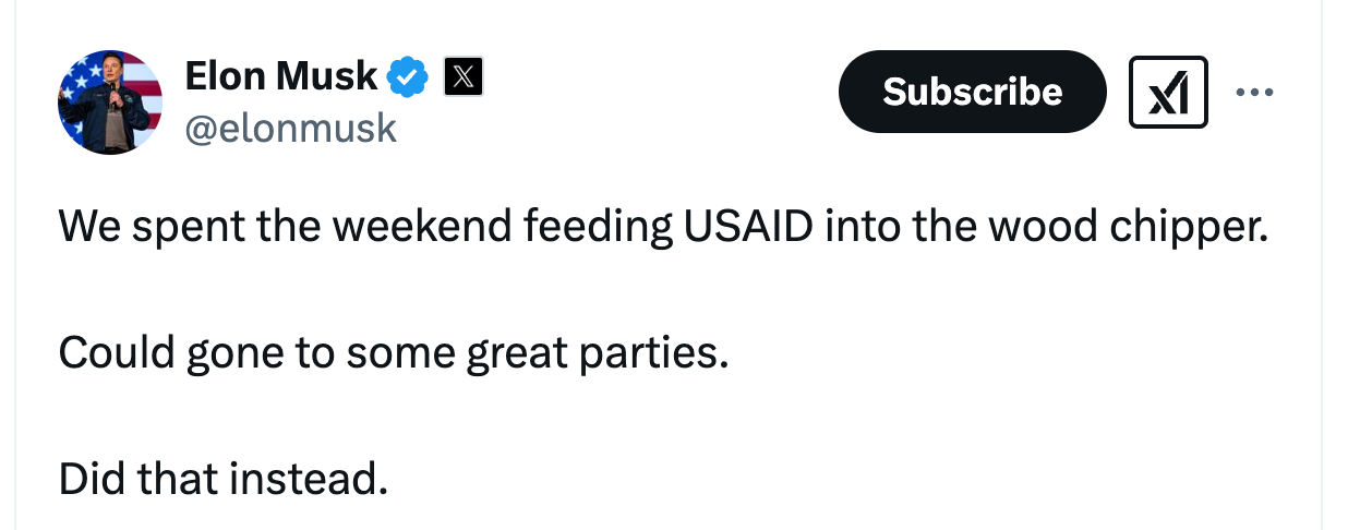 DOJ told Judge Nichols during today’s hearing that they are trying to root out “corruption and fraud” in the agency. Too bad Trump didn’t just keep the Inspectors General, who he fired in violation of law last week, in place—because that’s their job. They’re the folks who go after corruption, fraud, and waste. And, in any event, it strains credulity to believe Musk and his boys could have found such conclusive evidence of rampant corruption in just a few days that shutting down an entire agency that does so much good was justified.