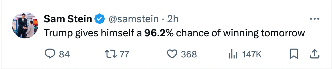 Some states will have final tallies, or close to them, tonight. Michigan, for instance, has new rules that are designed for a faster count. Others may take a day or longer, including Arizona and Georgia, especially if it’s close. Litigation can also delay results, but as we know from 2020, just because the Trump campaign or the RNC files a case, it doesn’t mean they’ll win. As Marc Elias is quick to point out, he won 61 of 62 cases in 2020, and the one he lost was just an early-stage procedural issue.
