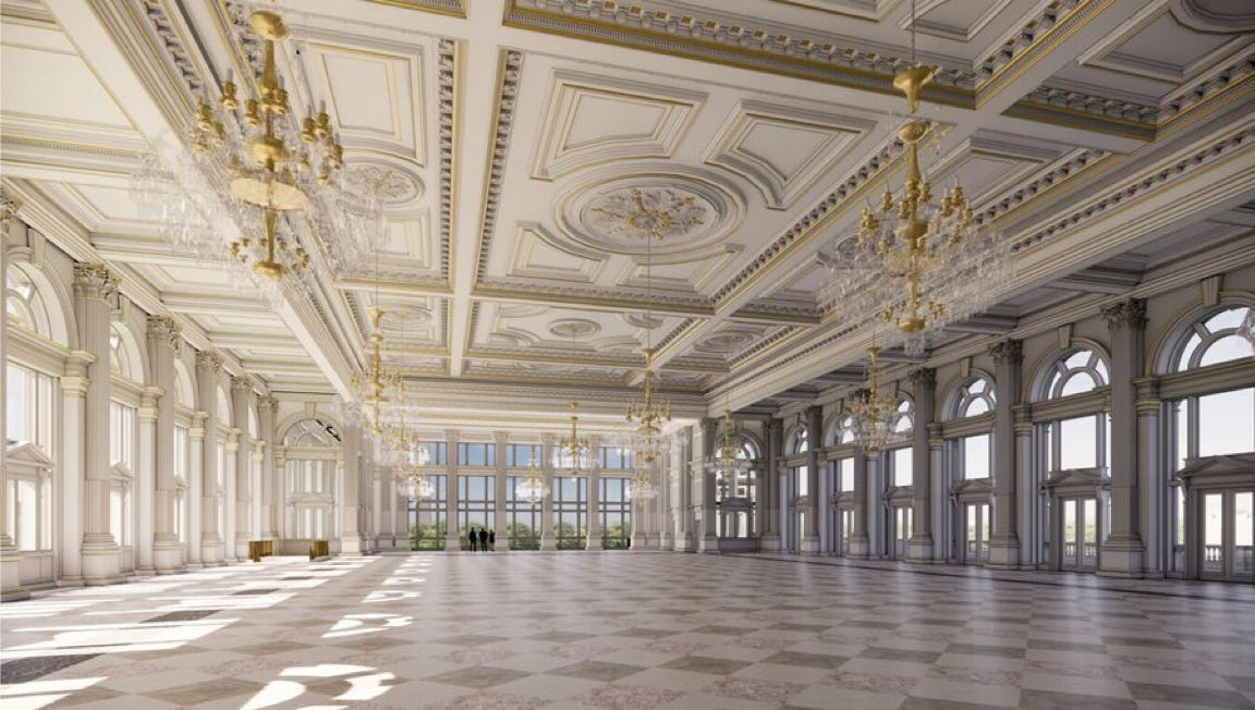 Trump apparently thinks he can appease his viewers with pictures of his new ballroom. He posted a series of them on Truth Social today. Like this one.