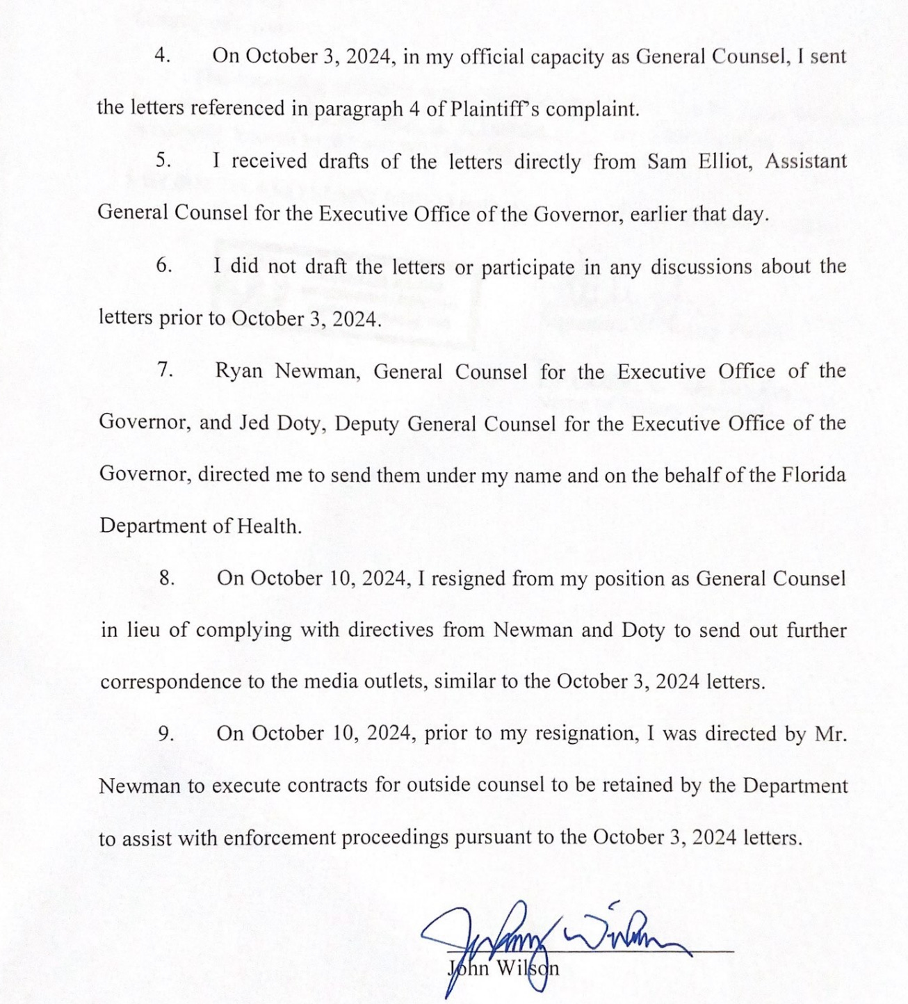 The cease-and-desist letters were signed by John Wilson, who was the general counsel for the health department until he resigned several days after sending the letters. Today we learned more when he filed an affidavit in the case, where he swore under oath that Governor Ron DeSantis’ office ordered him to send out the letters and that he subsequently resigned rather than send out more of them. This would seem to put responsibility squarely on the governor’s doorstep.