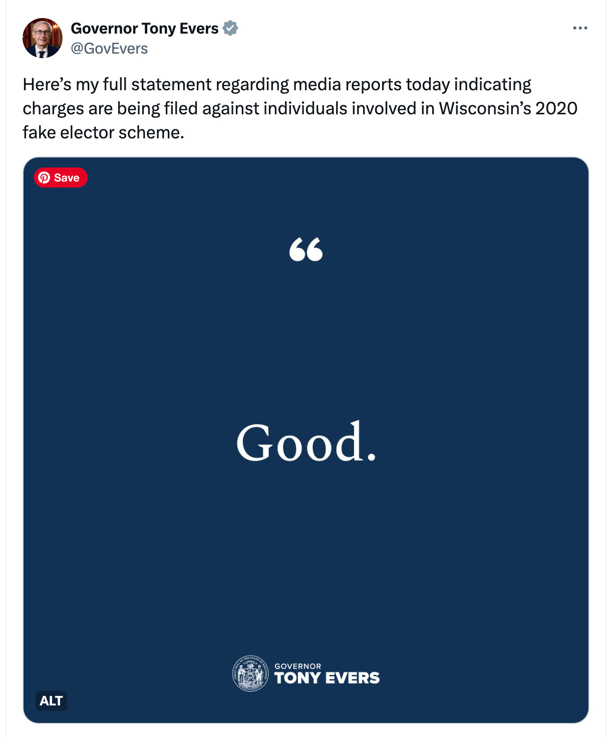 Wisconsin’s Governor, Tony Evers, is apparently a fan of the prosecution.