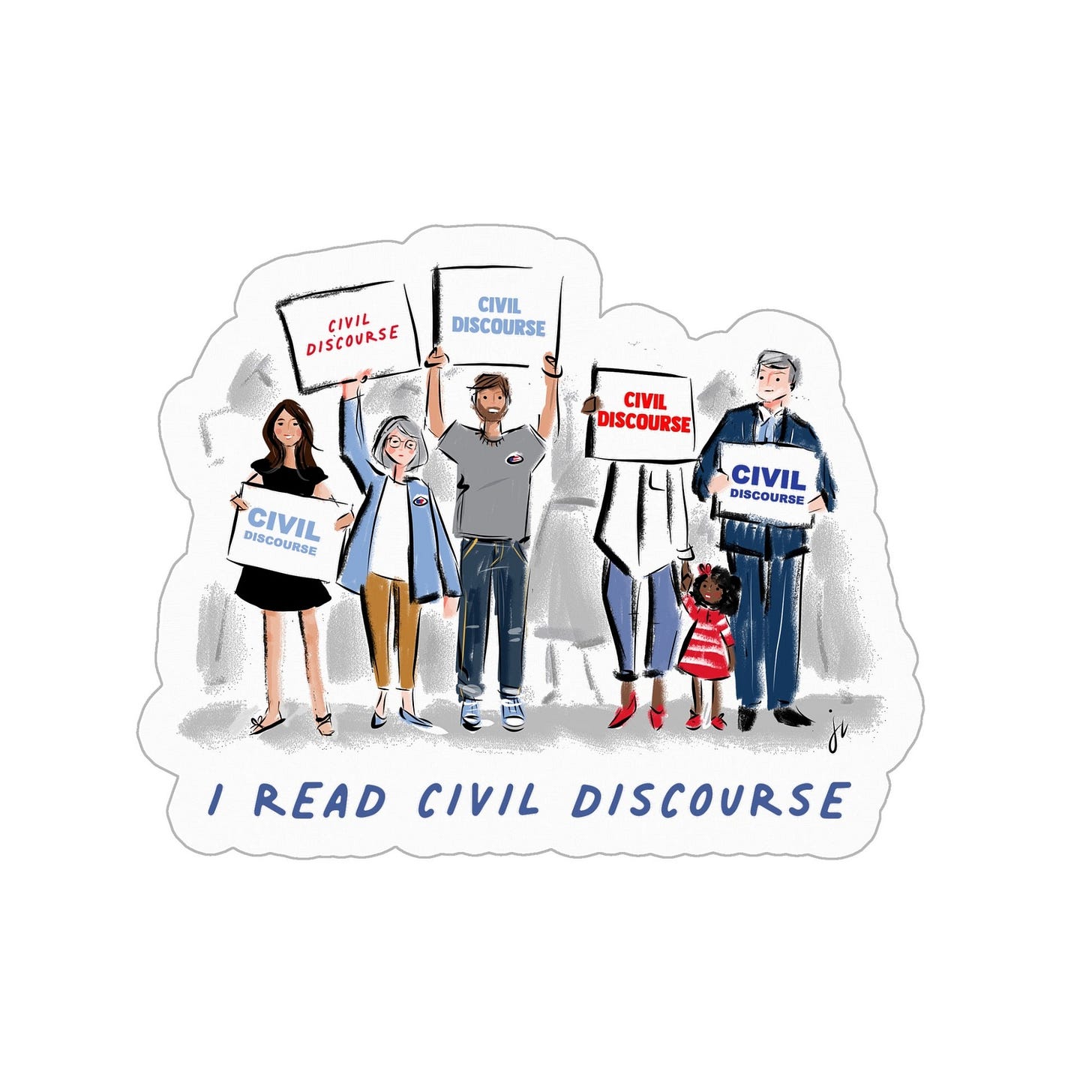 Finally, I have received a lot of emails from folks who want to buy a Civil Discourse mug—many of you liked the one with the chicken on it. I’m excited about your enthusiasm! Civil Discourse turns two on Friday, and I promise you’ll be able to order mugs and a few other things (could there be a flag in the works?) before then. Stay tuned for that announcement in the newsletter later this week.