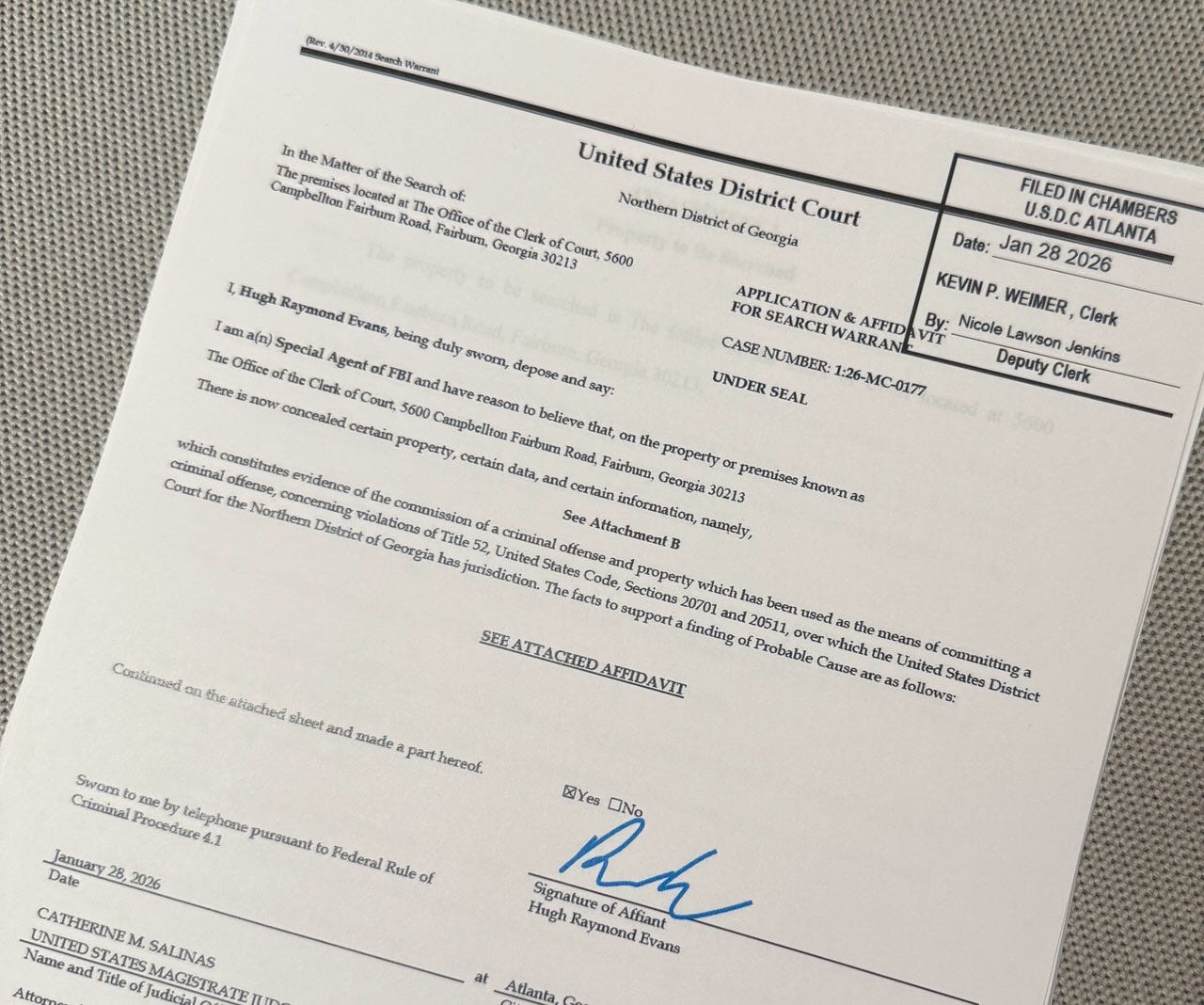 Today, the affidavit submitted when the Trump administration got its warrant to seize ballots from Fulton County, Georgia, was unsealed. I was expecting, well, probable cause. Because that’s what it takes to get a search warrant. But I didn’t find it in the 19-page affidavit the agent submitted along with the application for a search warrant.