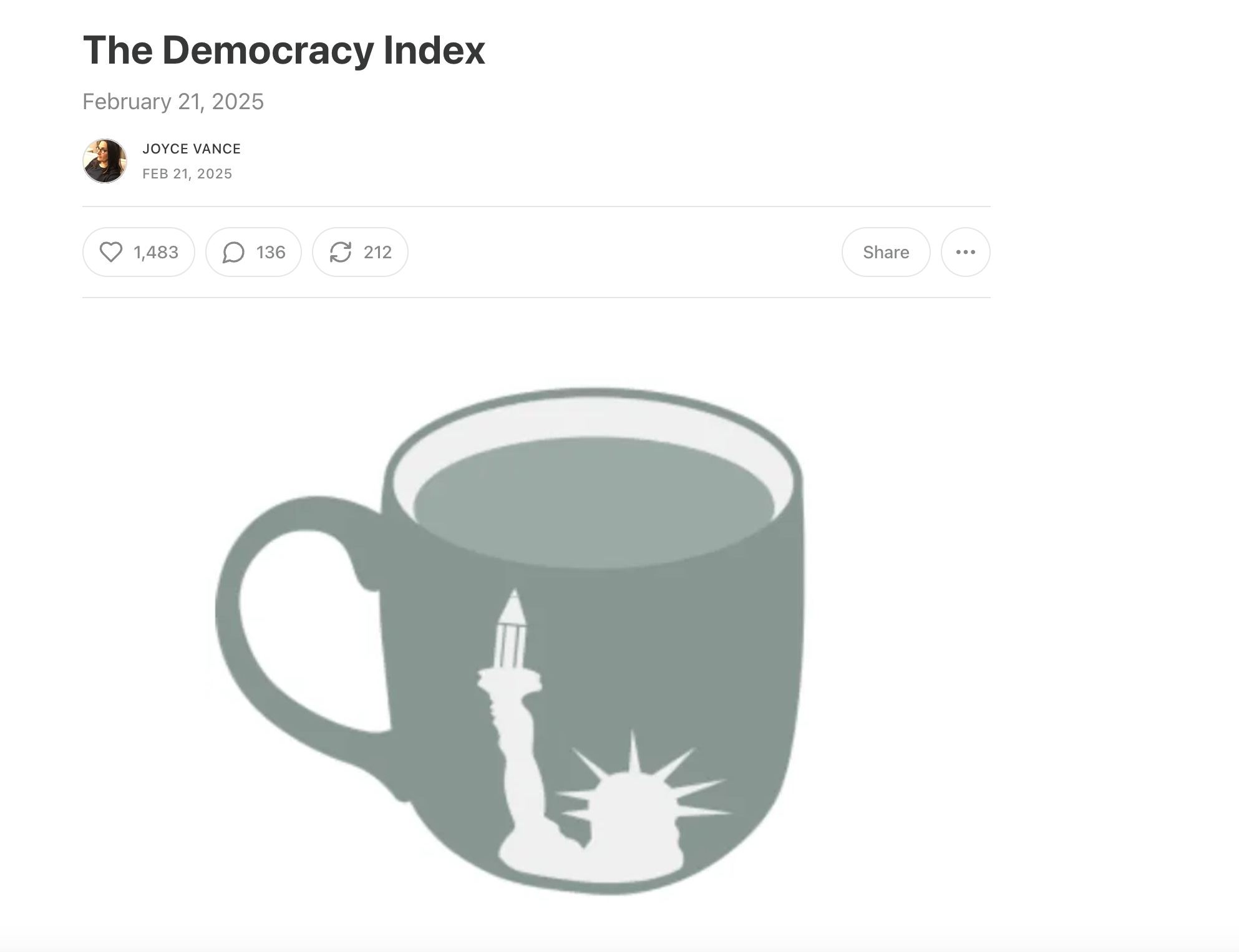 The Democracy Index is a weekly column at The Contrarian, that you can access for free.