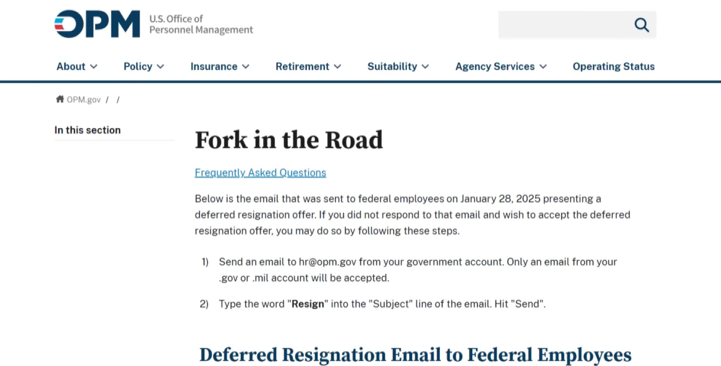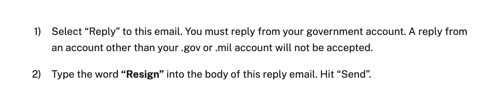 To take advantage of the “opportunity” they were being offered, employees need only hit reply and send the word “resign” back—a laughable process for anyone who has ever worked in or with the federal government and understands the amount of paperwork involved in even the most simple of actions. To underscore the obvious, no federal employee should be duped into thinking this is a normal, enforceable buyout with all of their rights, including severance pay and pension, fully protected.