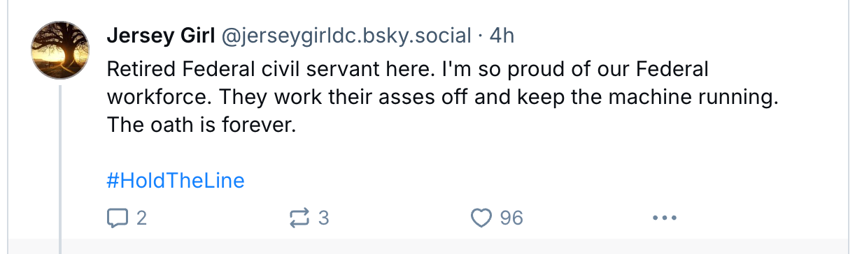 Americans, it turns out, love their democracy. They may have voted for lower egg prices. They may have regrettaby fallen for the blather of a man who said he cared about them. They may have tuned out and ignored this last election. But the federal workforce now understands the assignment and the importance of the moment. And they’re going to educate their friends, families, and neighbors in the process.