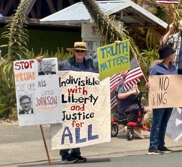 People went out to protest in Minnesota despite, or perhaps because of, the political violence that rocked that state in the early morning hours yesterday.