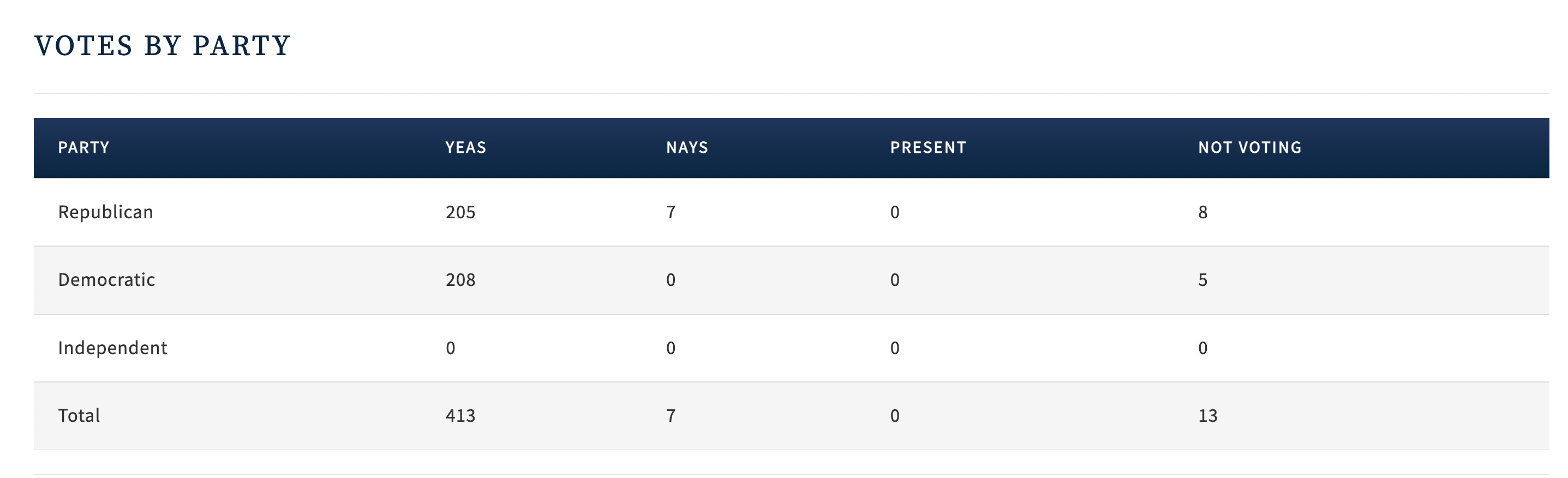 Only seven members of the House voted against the bill. It cleared the House on an overwhelmingly bipartisan 413-7 vote (13 members weren’t present), almost unheard of these days. It took just over two months for S. 3250 to pass both chambers of Congress.