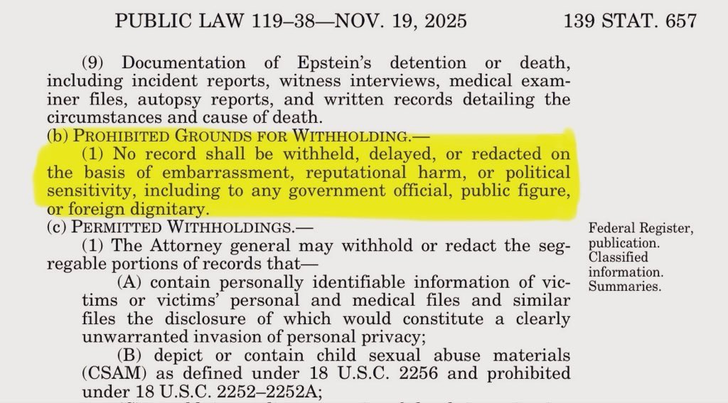It’s an understatement at this point to say that both Democrats and Republicans in Congress aren’t happy with how Attorney General Pam Bondi is “complying” with the Epstein Files Transparency Act. It’s not just the botched production of documents; it’s also her failure to comply with deadlines, the incomplete production, and the heavily redacted releases, which seem to be offering protection to some of the powerful men who spent time with Jeffrey Epstein, which the Act explicitly prohibits.