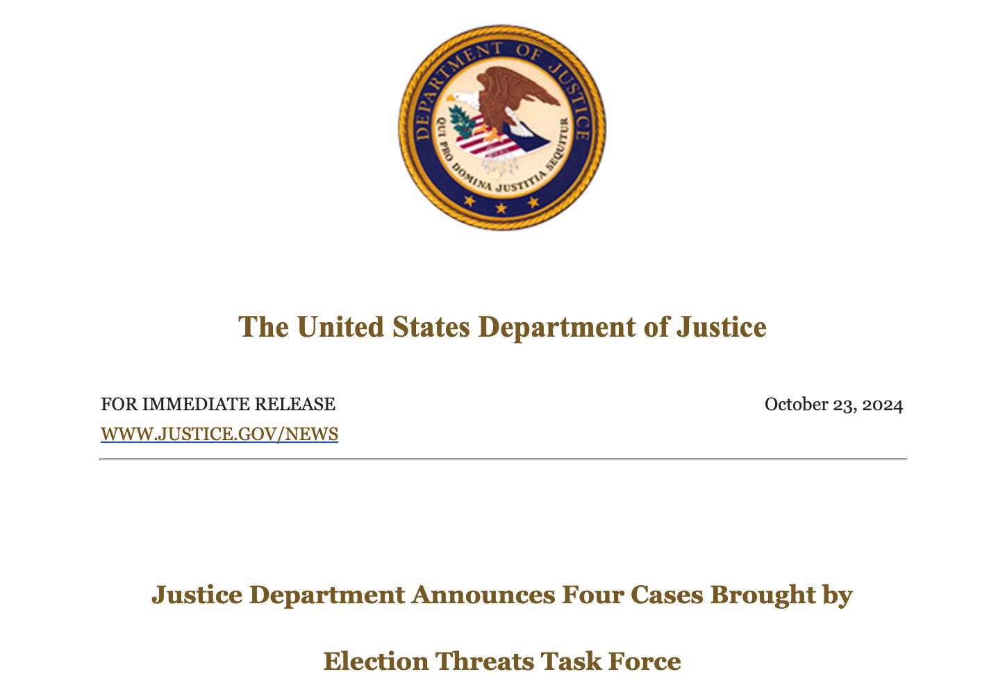 The Deputy Attorney General, Lisa Monaco had this to say: “Threats to election workers are threats to our democratic process. No one should face violence or threats of violence simply for doing their job. The actions announced today make clear that we will not tolerate those who use or threaten violence in an effort to undermine our democratic institutions. To carry out their essential work, election officials must be free from improper influence, physical threats, and other forms of intimidation.”