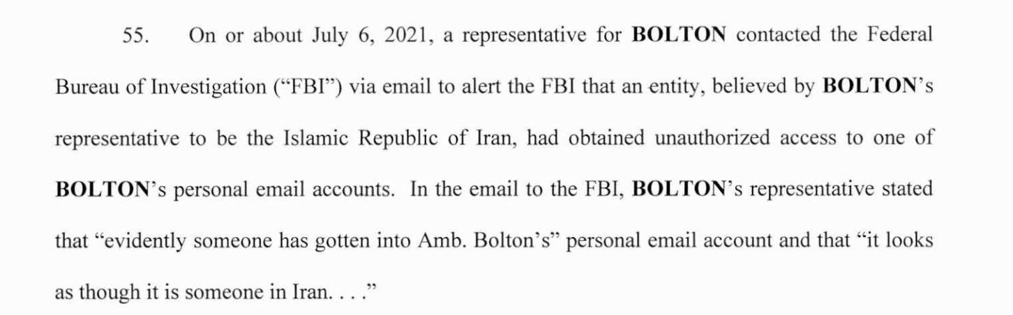 In one of the most damaging sections in the indictment, there is a revelation that in July of 2021, Bolton’s representatives advised the FBI his email account had been hacked, and he suspected Iran was behind it. The indictment goes on to state Bolton never told the FBI he had been sending classified information in emails using this account, nor did he tell them that all of that information was now in the possession of whoever had done the hack.