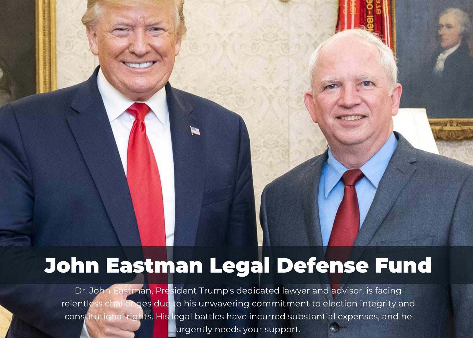 Take, for example, his website, the “John Eastman Legal Defense Fund,” where he has been relentlessly trying to crowdfund payment for his attorneys. He tells would-be contributors he needs their help because of his support for “election integrity” and “constitutional rights.”