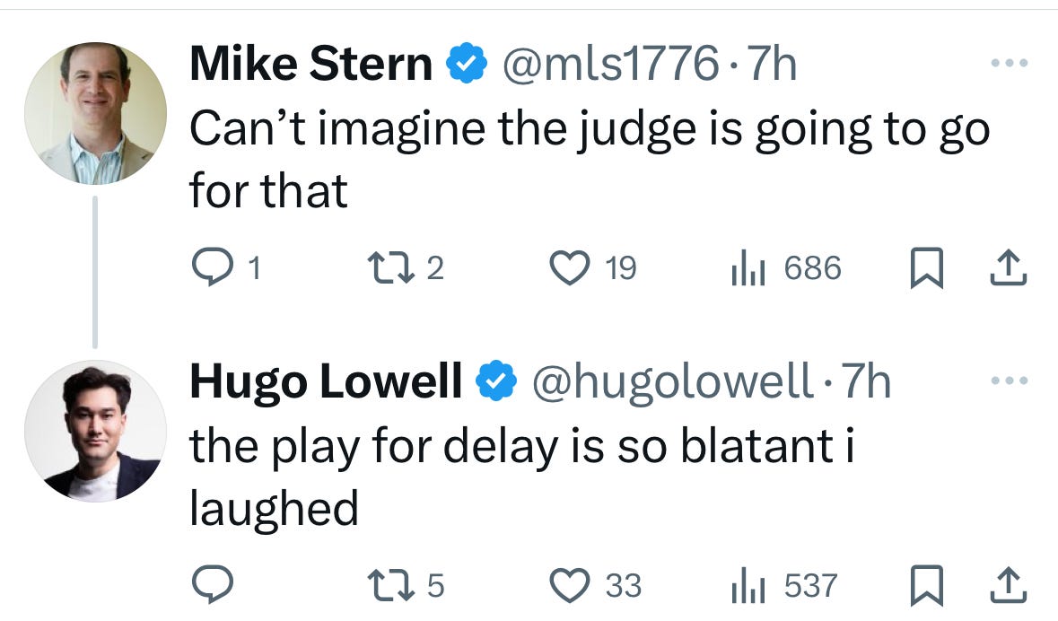 But that’s it, as far as agreement goes. The motion is ten pages in all. The parts the two sides agree upon take up two paragraphs, not even half of a page. The Special Counsel’s position takes up roughly two pages. Trump’s takes up roughly six and one-half pages. The bottom line is that Trump’s lawyers are devoted to preventing the public from learning anything about the Special Counsel’s evidence in the case before the election. It’s the same strategy we’ve seen Trump use repeatedly in litigation: delay, delay, delay.