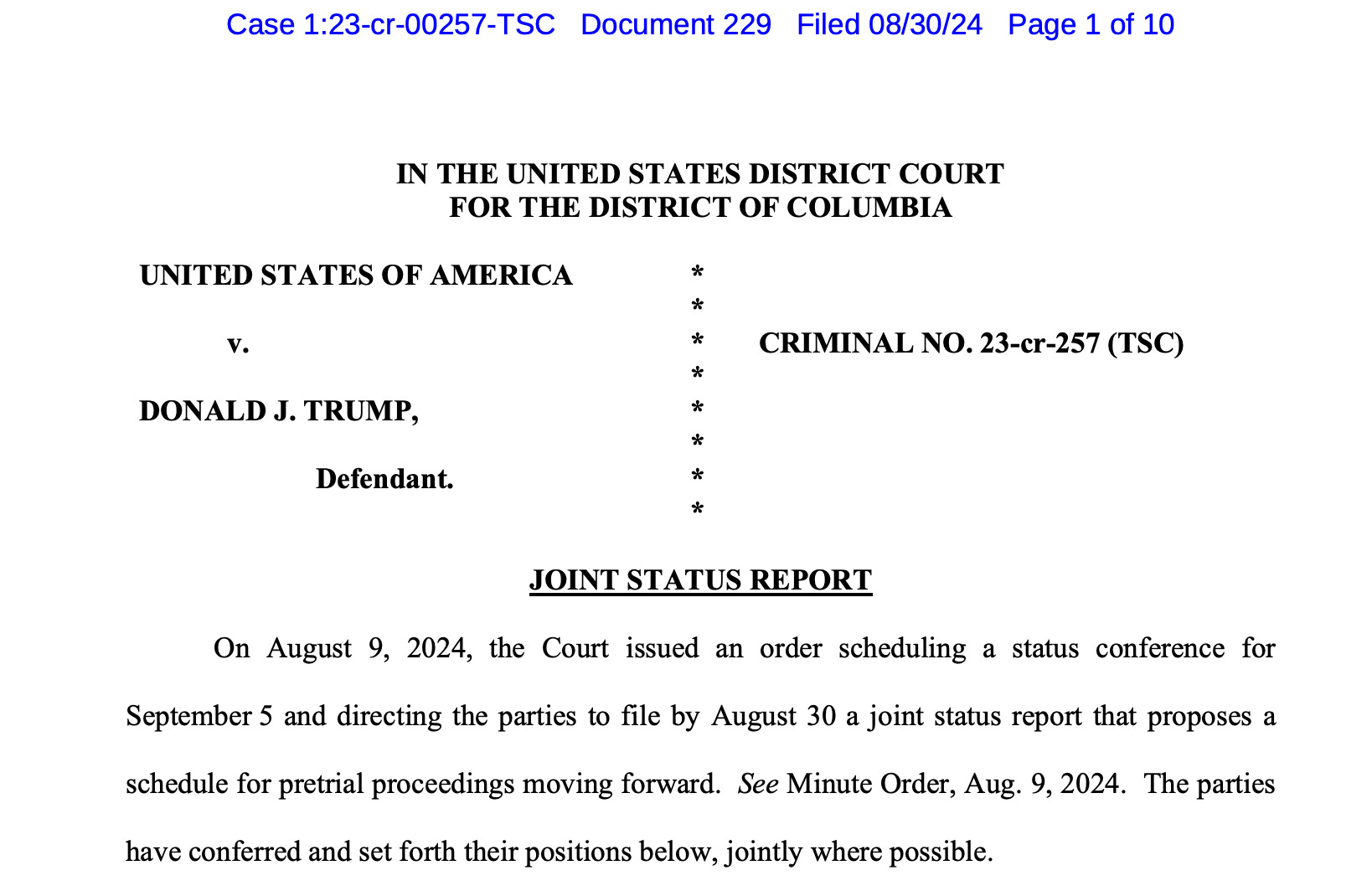 The lawyers were under court order to try and reach agreement, but the court advised them they could also lay out their separate views where agreement wasn’t possible. The report reflects very different perspectives on how the prosecution of Trump for election interference should progress.