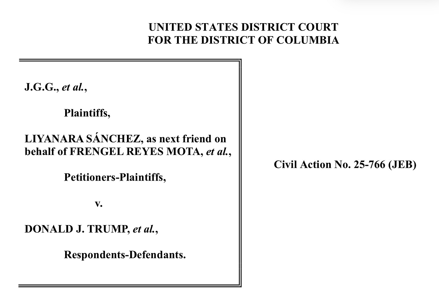 The plaintiffs in J.G.G. v. Trump are non-U.S. citizen Venezuelan nationals who were denied due process before the Trump administration deported them under the Alien Enemies Act in March 2025. There is also a class of similarly situated individuals.