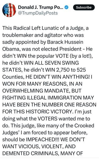 Donald Trump responded by calling for Judge Boasberg’s impeachment.