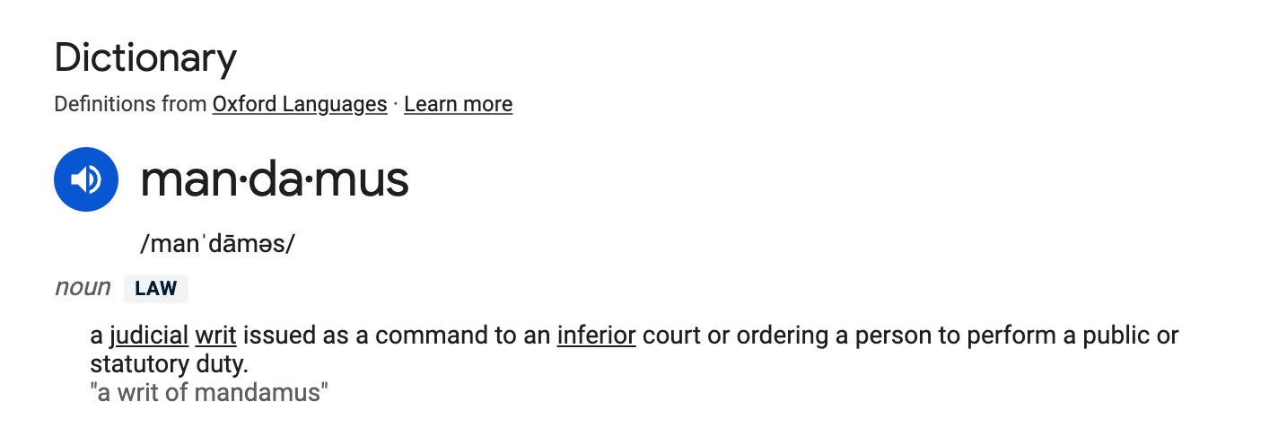 The Eleventh Circuit rule is that mandamus is available “only in drastic situations, when no other adequate means are available to remedy a clear usurpation of power or abuse of discretion.” Smith will have to convince the court three conditions are met to get them to rule in his favor: