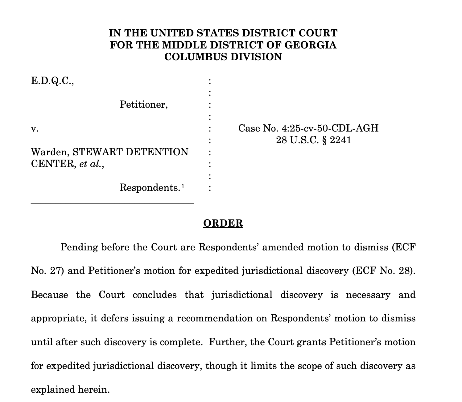 This evening, in Columbus, Georgia, not exactly a bastion of liberalism, federal Magistrate Judge Amelia Helmick ordered the government to disclose the terms of the deal it made with El Salvador to house people it has sent to that country’s CECOT terrorist prison. The case involved a Venezuelan man, identified as E.D.Q.C., who was deported without due process, and specifically, an opportunity to raise a fear of torture claim if he was sent to El Salvador.