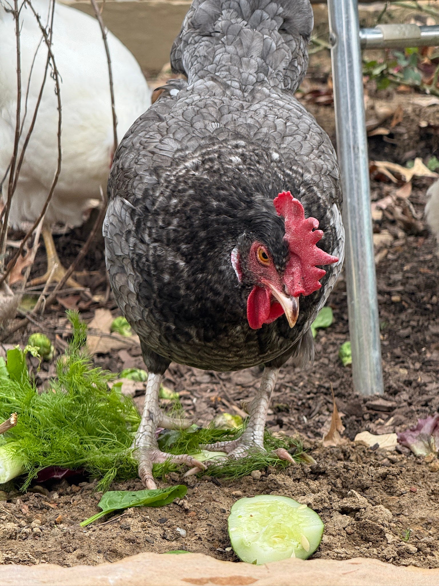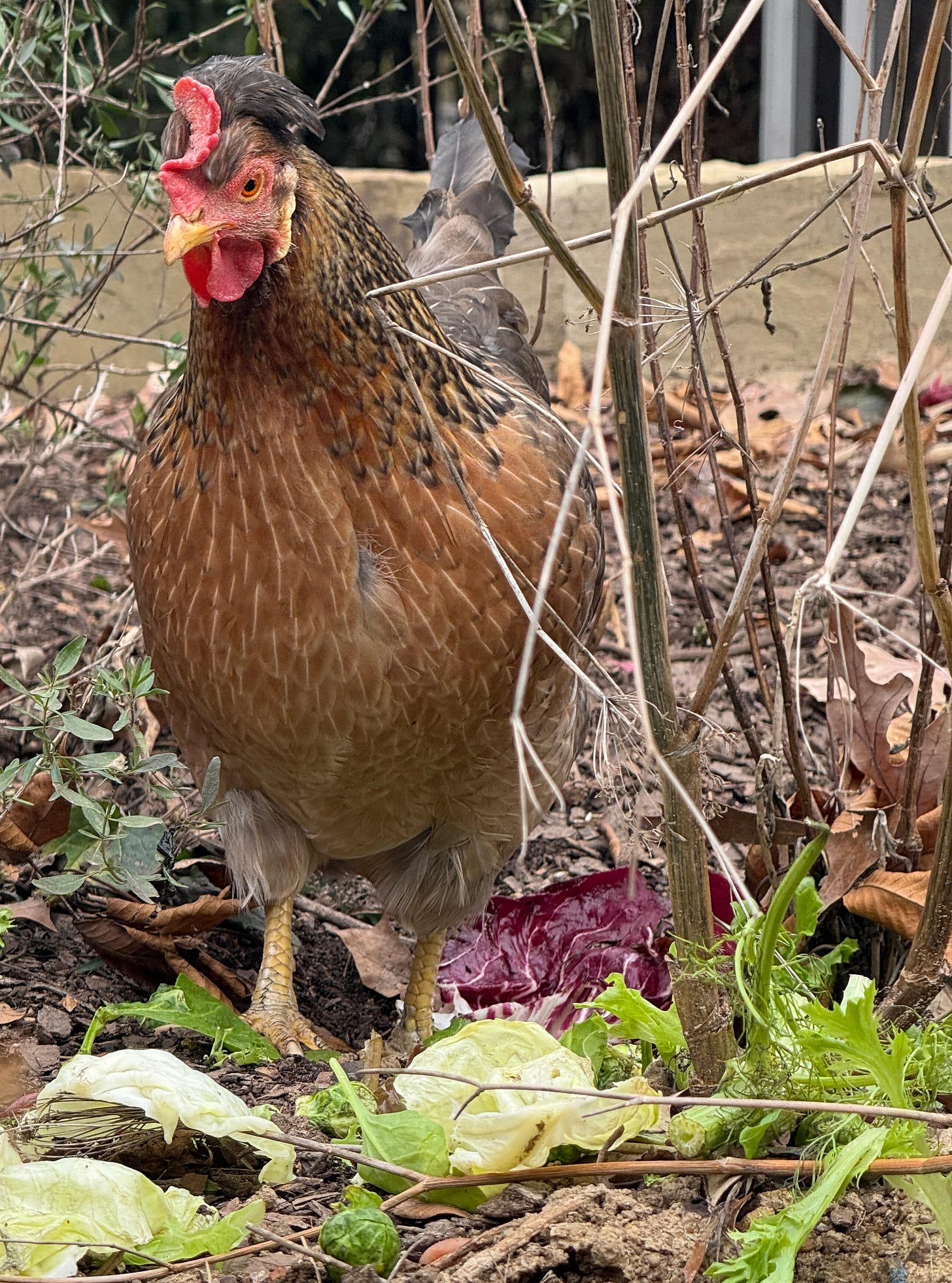 In our family, Christmas Eve is one of those times we’re able to get together with friends who are so close they’re family, and in recent years, it has become my tradition to make Cassoulet, which sounds a lot more difficult than it actually is, but takes a while to put together. I’m recuperating today and enjoying time with friends and family—I hope you are too. So I’m leaving you with Christmas greetings from the chickens, who are having quite the smorgasbord this morning.