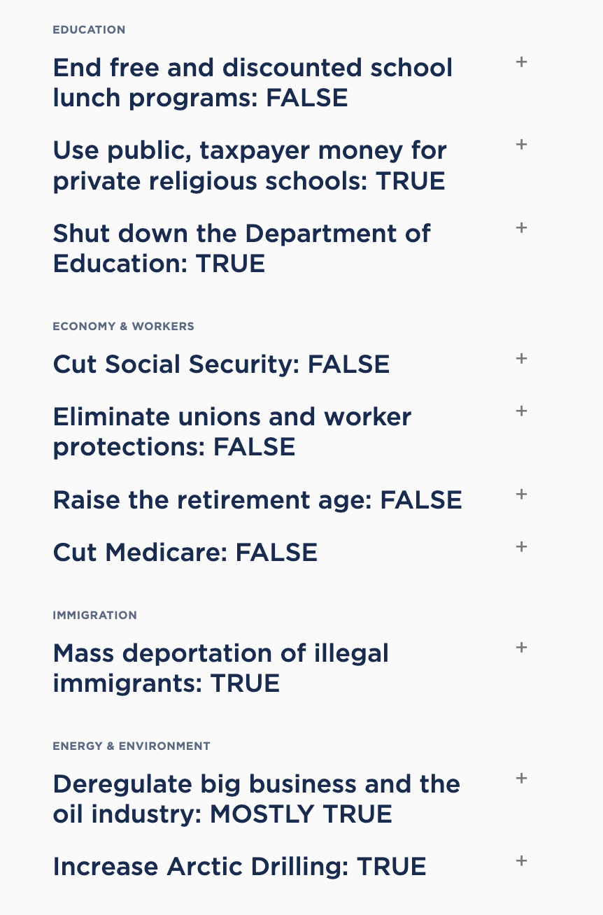 There are a lot of specifics here, many of which we’ve already discussed. They identify the four “real policy recommendations.” These are some of the worst proposals: mass deportations, ending even the baby steps we’ve been taking to prepare for climate change, firing career civil servants and replacing them with Trump loyalists, and eliminating the Department of Education and programs like Head Start.