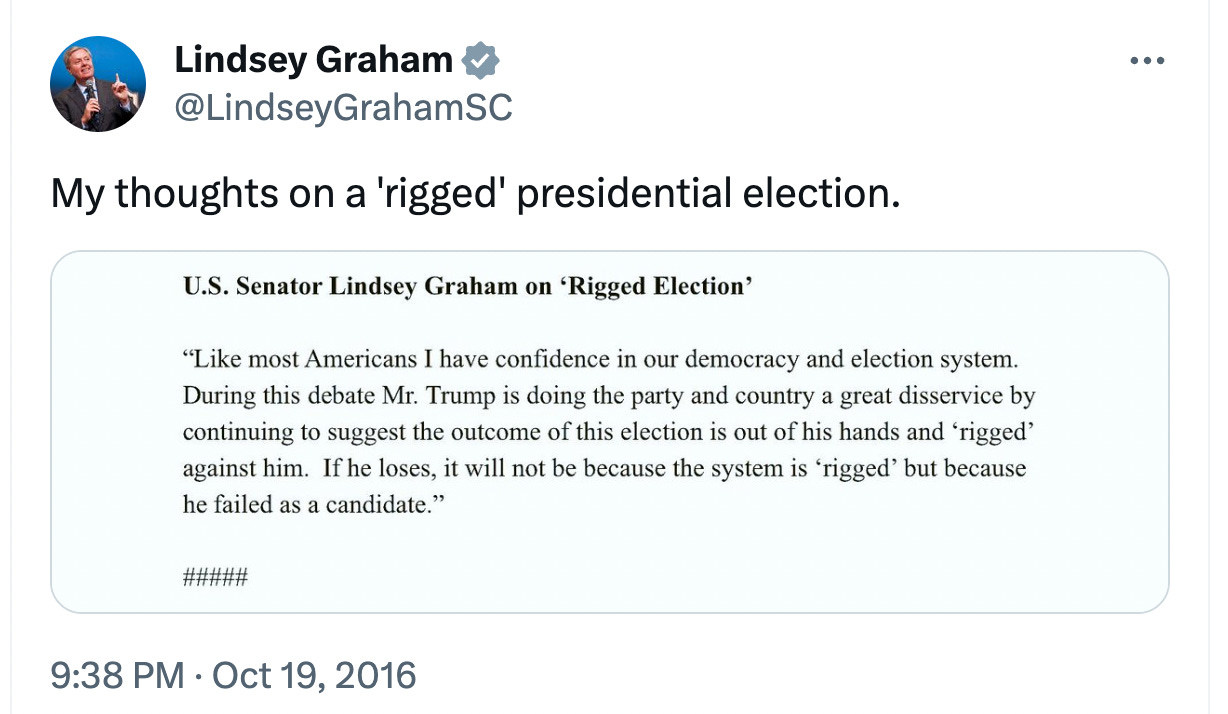 In 2016, there were still people in the Republican Party who saw the danger in undermining public confidence in our elections. Of course, that time is long gone.