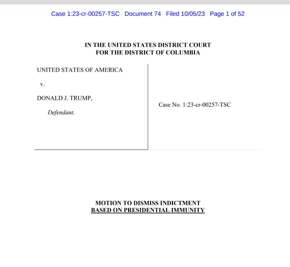 A surprising number of things happened today for what should have been a quiet Thursday in October. That seems to be true more days than not with a former president, his party’s frontrunner presidential candidate, facing four criminal indictments and mid-trial in a civil fraud case that will end his ability to conduct a real estate business in the state of New York. But today was different—not only were there a lot of developments, they were highly significant. Trump has asked a federal judge in Washington, D.C. to dismiss the criminal prosecution against him there. He asked Judge Aileen Cannon to delay his criminal trial in Southern Florida until after the election. He moved to dismiss the New York state criminal case against him, the one that involves payments to Stormy Daniels, and indicated he would move to stay the ongoing civil fraud trial in New York while he takes an appeal.