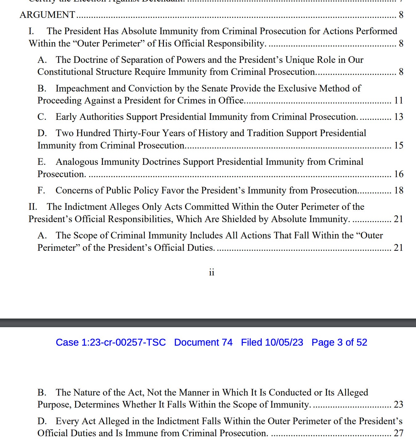 You can get a sense of the argument Trump’s lawyers make from the outline in their table of contents: