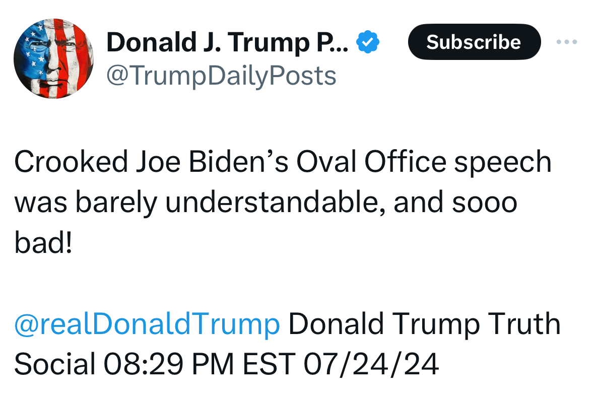 Tonight, sitting behind the Resolute Desk in the Oval Office, President Biden told us that history is in our hands. In a speech that registered, at least with Democrats, he told us in plain language what matters the most: Donald Trump is a singular threat to our democracy.