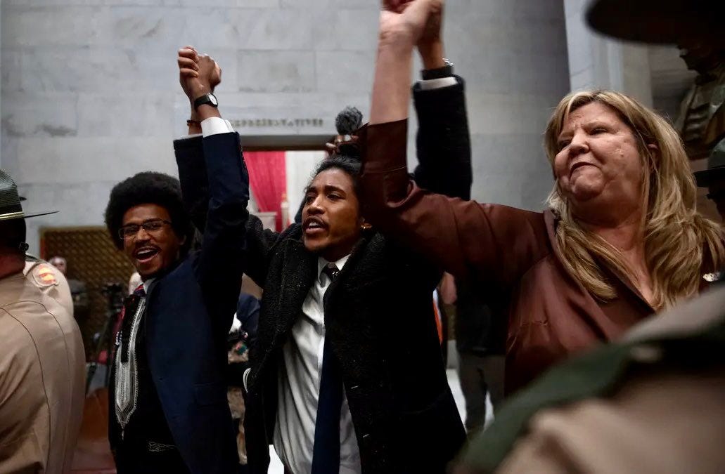 The Bond case was about whether a newly elected member should be seated, so it’s not precisely the same situation as what we are seeing in Tennessee today. But the principle is the same: members of the Tennessee legislature do not lose their First Amendment rights by virtue of their election, and especially not when they are seeking to represent the constituents who elected them. A challenge to those members’ First Amendment rights cannot be dressed up as a violation of decorum rules; it’s still a violation of First Amendment rights. And when two Black representatives are expelled while a white one narrowly avoids expulsion, no amount of dissembling can erase the obvious conclusion.