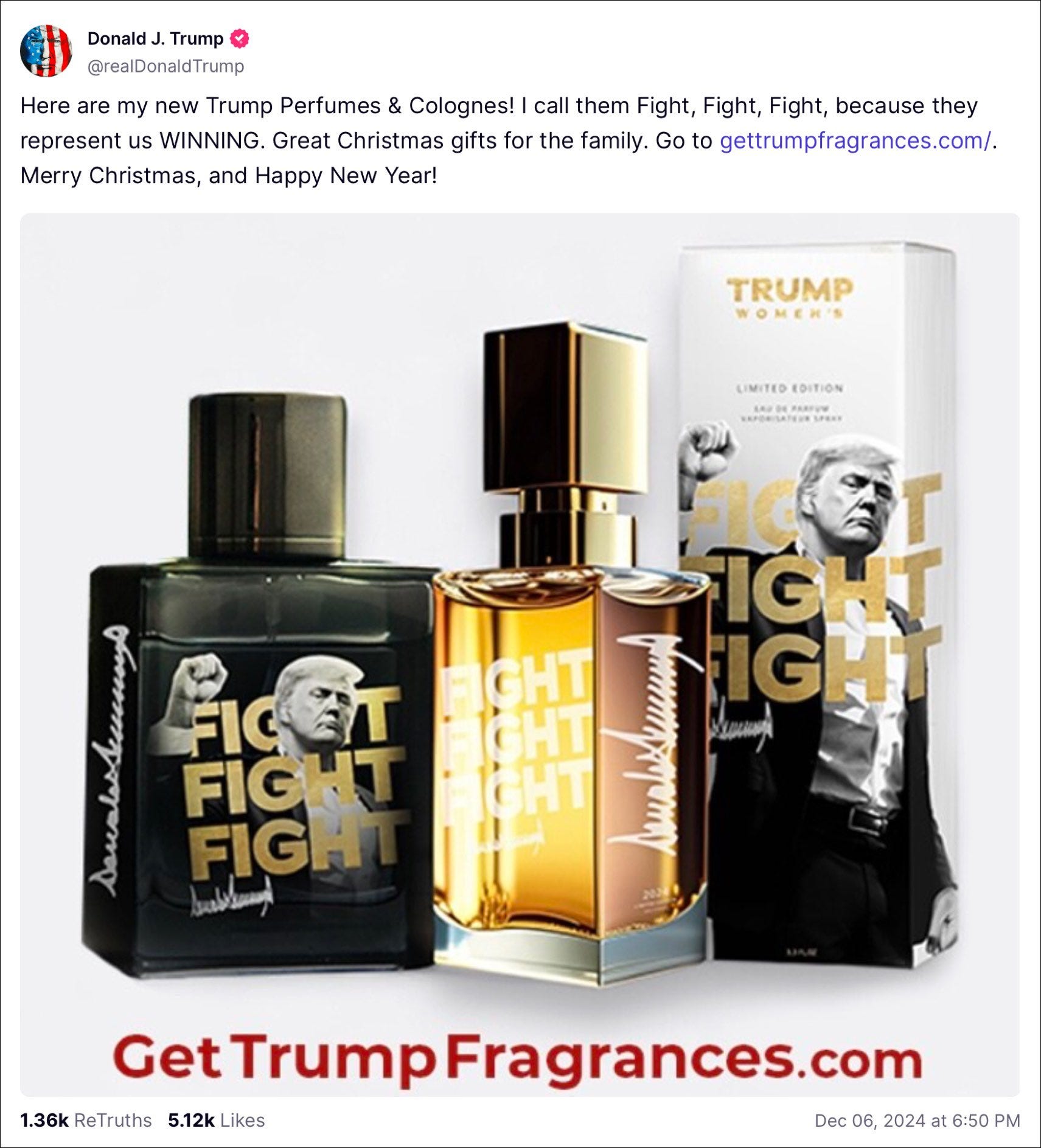 But Trump does. From the sublime to the ridiculous, he wants you to think he can do anything and get away with it. Like he did with this December 2024 post about perfume. Like he did with the big, bad, ugly budget bill that the country will now have to live with the consequences of because Republicans were too scared of Trump to vote it down. Trump is a classic bully dressed up in the mantle of the presidency, and we would do well to never forget that.