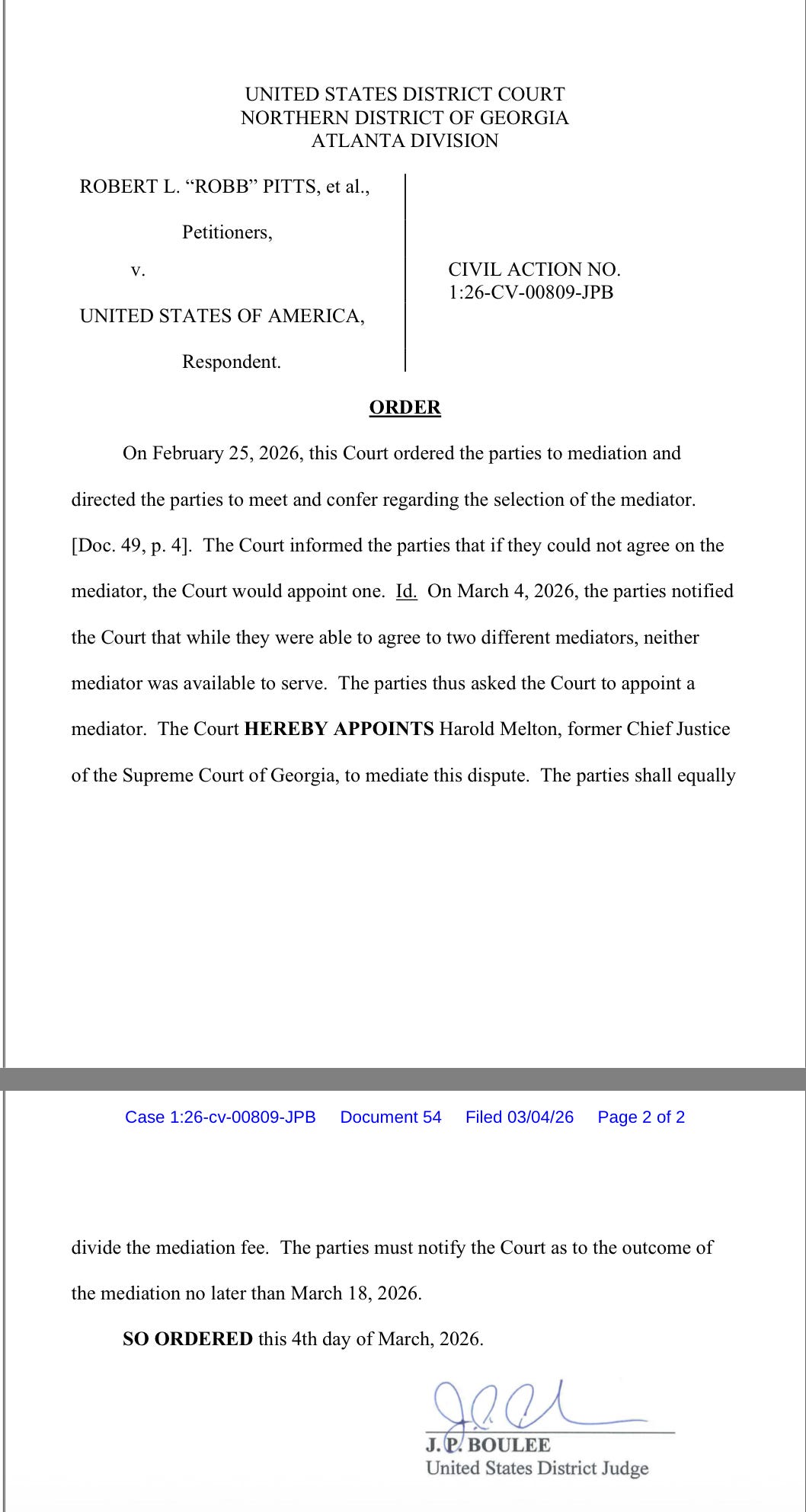 Finally, in Georgia, a mediator is on board to decide whether Fulton County is entitled to get its ballots and voting records back from the FBI. That mediation will have to happen quickly. The Judge has ordered the parties to advise him whether they are able to reach an agreement by March 18.