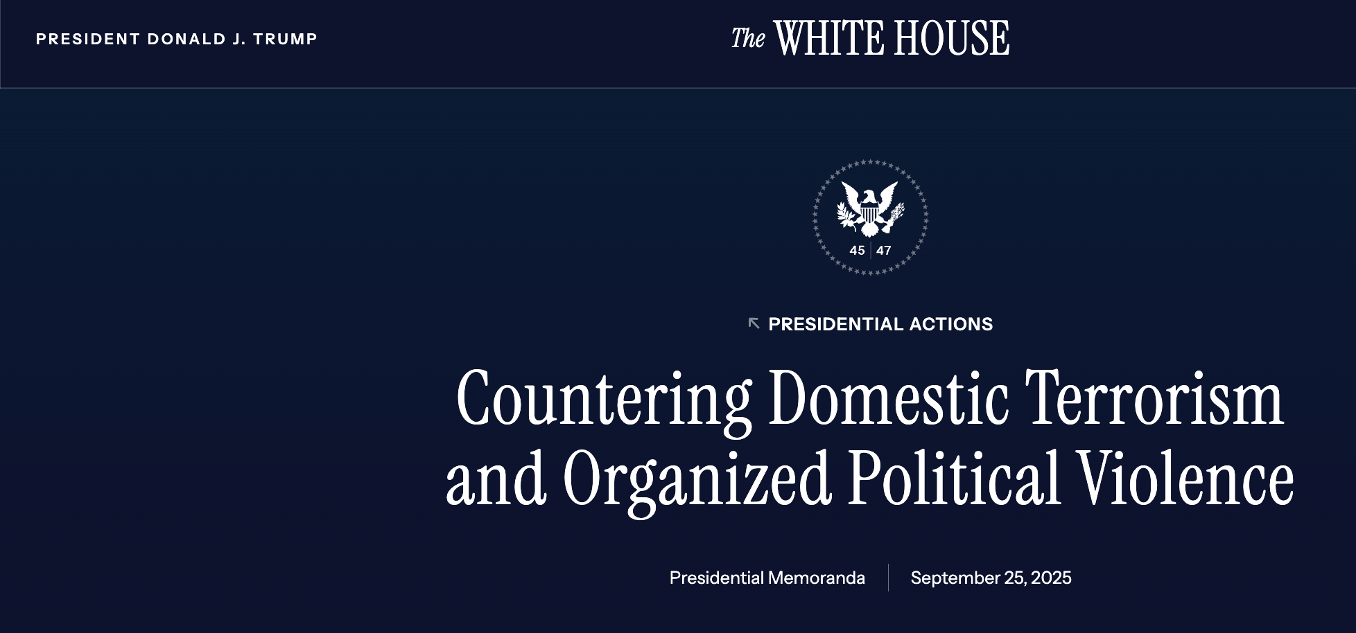 Trump claims the recent “political violence is not a series of isolated incidents and does not emerge organically.” He says it’s the “culmination of sophisticated, organized campaigns of targeted intimidation, radicalization, threats, and violence designed to silence opposing speech, limit political activity, change or direct policy outcomes, and prevent the functioning of a democratic society.” No evidence is offered to support this. But that doesn’t seem to matter in the rush to a conclusion: “A new law enforcement strategy that investigates all participants in these criminal and terroristic conspiracies — including the organized structures, networks, entities, organizations, funding sources, and predicate actions behind them — is required.” Although at first this seemed targeted toward civil society and civil rights groups that advocated and litigated on behalf of Americans and their rights, now, it seems to be turned against anti-ICE protestors who are doing nothing more than exercising their First Amendment rights.