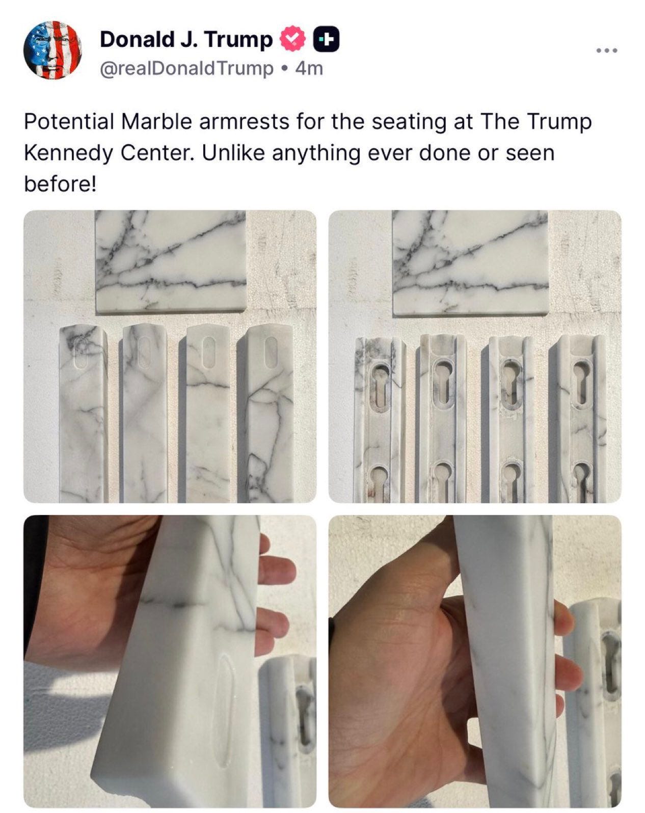 Since Trump is losing his marbles, he has to find marble somewhere.