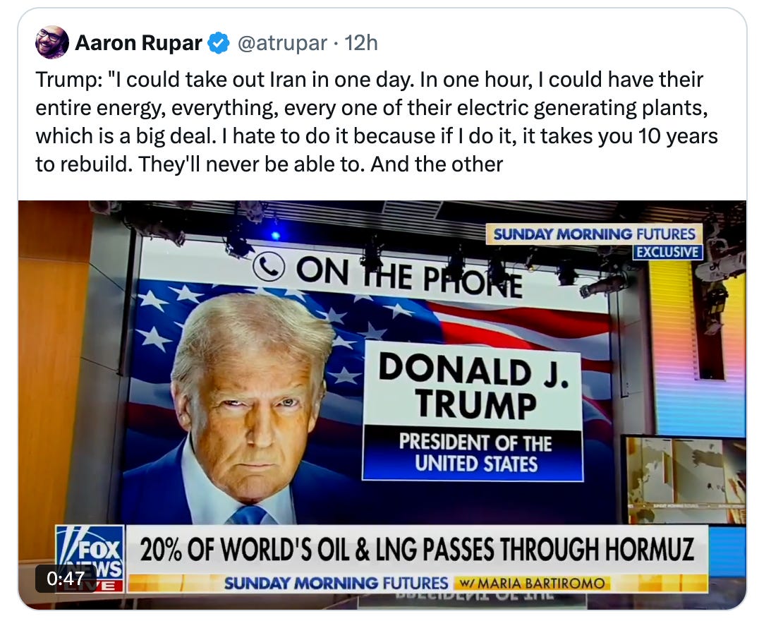 This morning, the President, for the second Sunday in a row, talked openly of committing war crimes in Iran.