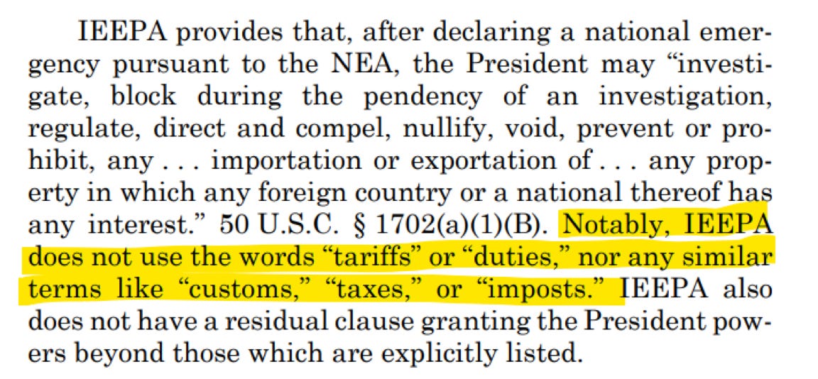 Trump is already setting up his attack on the Supreme Court if it rules against him. He criticized the Court of Appeals as “a Highly Partisan Appeals Court,” claiming that they “incorrectly said that our Tariffs should be removed. But they know the United States of America will win in the end.” Really, what Trump means is that he will win. King Trump is now “the United States” as far as he is concerned. He claimed that “If these Tariffs ever went away, it would be a total disaster for the Country. It would make us financially weak, and we have to be strong.” But Trump’s view on the economy can’t change the Constitutional duties assigned to each branch of government, nor does it mean he can use a law that says nothing about tariffs to impose them.
