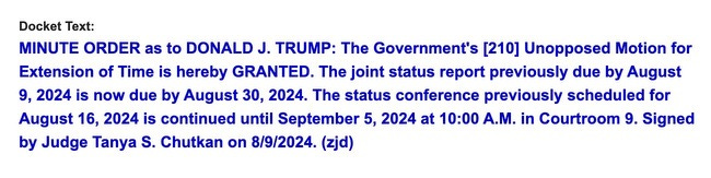 On Tuesday, we’ll have the brief itself to review. And then, on Friday, we’ll have the status report in the election interference case in Washington, D.C., which DOJ previously asked Judge Chutkan for a few extra weeks to file. That means that with the convention over, even though there will still be intense focus on politics, we’ll be back to discussing the law and specifically the prosecutions of Donald Trump, as well.