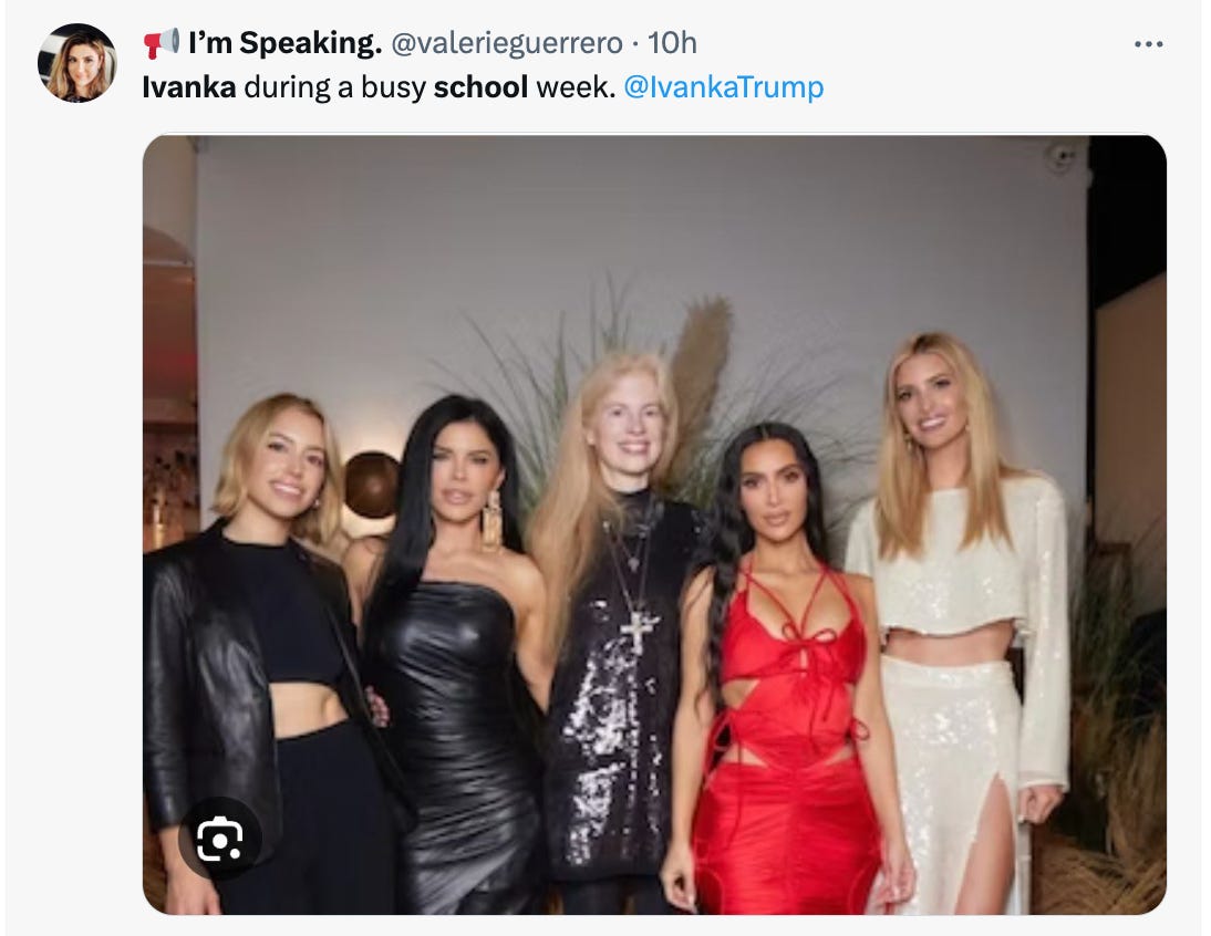 Ivanka is scheduled to testify on Wednesday, despite her efforts to get out of it. Her lawyer told the Judge she would face “undue hardship” if forced to testify “in the middle of a school week,” which led the internet to blossom with photographs of Jared and Ivanka on vacation trips around the globe and without their children. Ivanka was also mocked for a recent trip to hang out with the Kardashians.