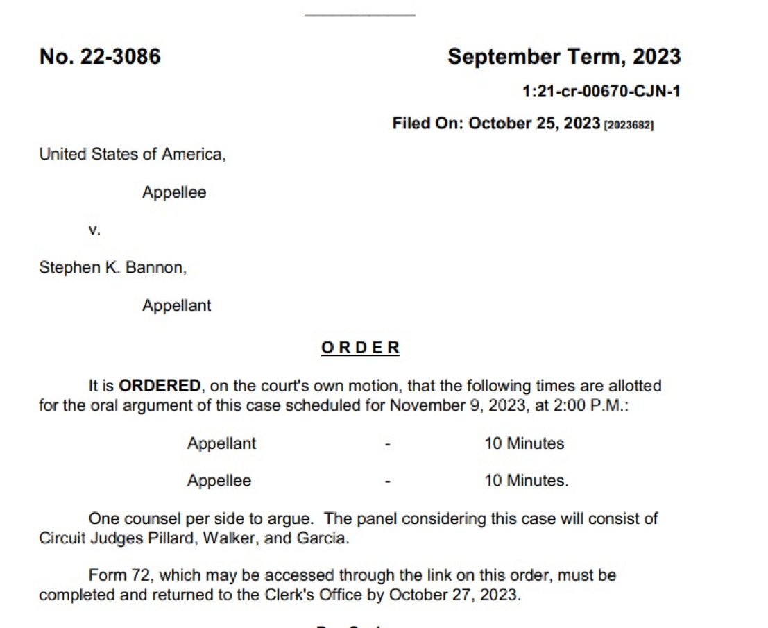 If this was a “normal” criminal case—i.e., one that wasn’t being conducted in the spotlight of political tribalism, I’d assess Bannon’s arguments as having zero chance of succeeding. We’ll see if that holds up here.