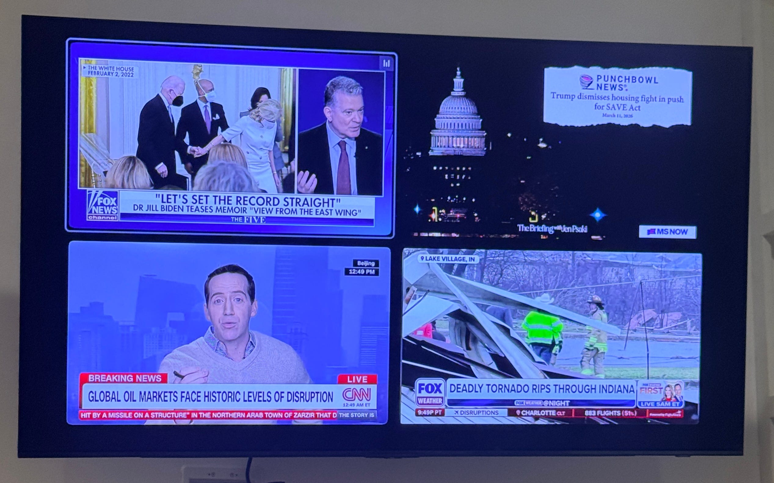Whether it’s the economy and affordability, Trump’s wars, the Epstein files, or the state of our democracy, there is little good news for Trump as the primaries continue and midterms come closer. I turned on the TV tonight, to find that Fox News was telling its viewers about Dr. Jill Biden’s new biography as CNN discussed the disruption in the oil markets and MS NOW highlighted Trump’s ongoing efforts to pass the SAVE Act.