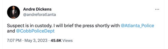 After a scramble to find him, with police concentrating first in the building where the shooting occurred and then following leads throughout metro Atlanta, the suspect was arrested just before 8 p.m. local time.