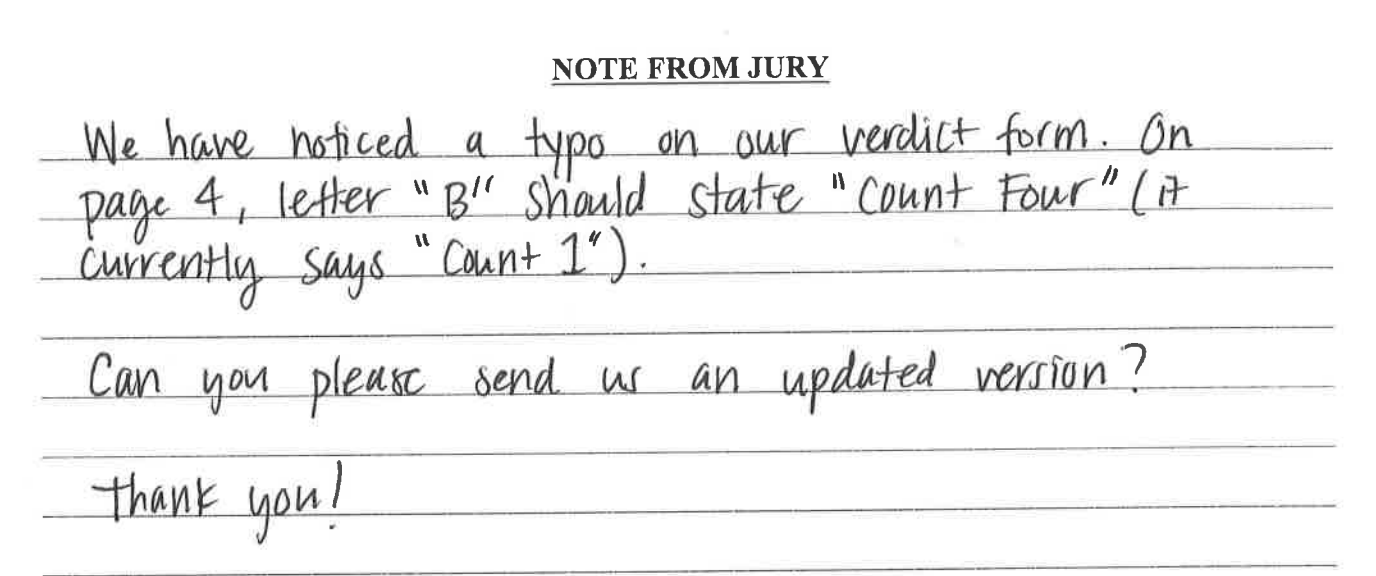 As a reminder, both the trial in the E. Jean Carroll case and jury deliberations in the Proud Boys prosecution continue. The jury in the Proud Boys case is extraordinarily diligent and sort of adorable. Whatever their verdict, it’s clear that they are closely scrutinizing everything. I like a jury that takes its job seriously.
