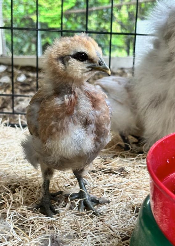 We were fortunate with last night’s weather. All of the Vances, including the baby chicks, are fine. They spent their first night in the big coop with all of the grown-ups and were waiting for me this morning, having followed the big chickens down the ladder. They were peeping for breakfast when I got there.