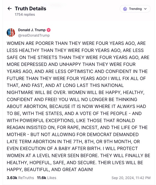 Trump thinks women can be told that they are less confident about the future than they were four years ago and they will simply accept it. Women will get on Truth Social, read his post, and think, I don’t need to worry anymore because Donald Trump will fix all of that.