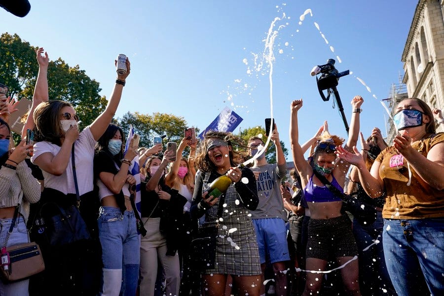 In 2020, early exit polls showed Biden winning the votes of 57 percent of women. A majority of American women were eager to end Trump’s power over their lives. If the best argument Trump has to convince those women to vote for him is that they’ll lose more rights while he tells them to be happy about it, well, good luck with that.